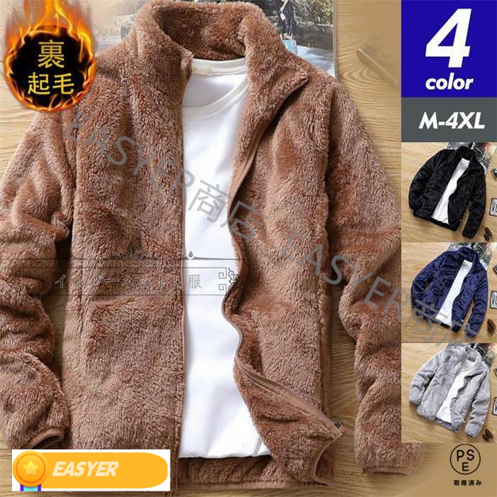 ボアジャケット メンズ フリースジャケット 厚手ジャケット アウター ブルゾン もこもこ 防寒 インナー ゆったり 立ち襟 無地 通勤 通学 おしゃれ