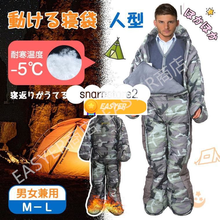 人型寝袋 動ける寝袋 M L 歩ける寝袋 シュラフ 車中泊 寝袋 冬 着るシュラフ 着る寝袋 着て 動く ねぶくろ 暖房節約 防寒着 保温 耐寒温度-5℃ 寝返りしやすい