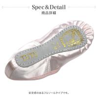 ※ サテン生地が硬く足にフィットしにくいので、一般的なバレエシューズより大きめのサイズをお選びください。