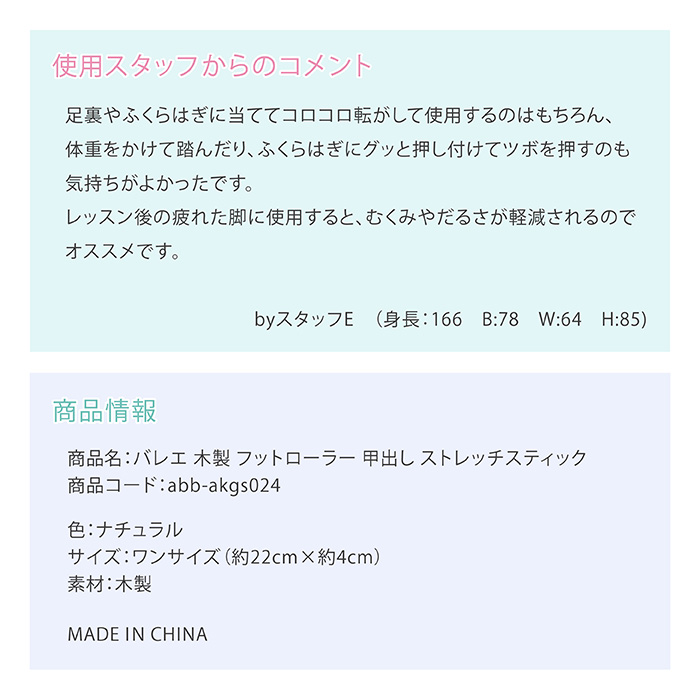 商品名:バレエ 木製 フットローラー 甲出し ストレッチスティック