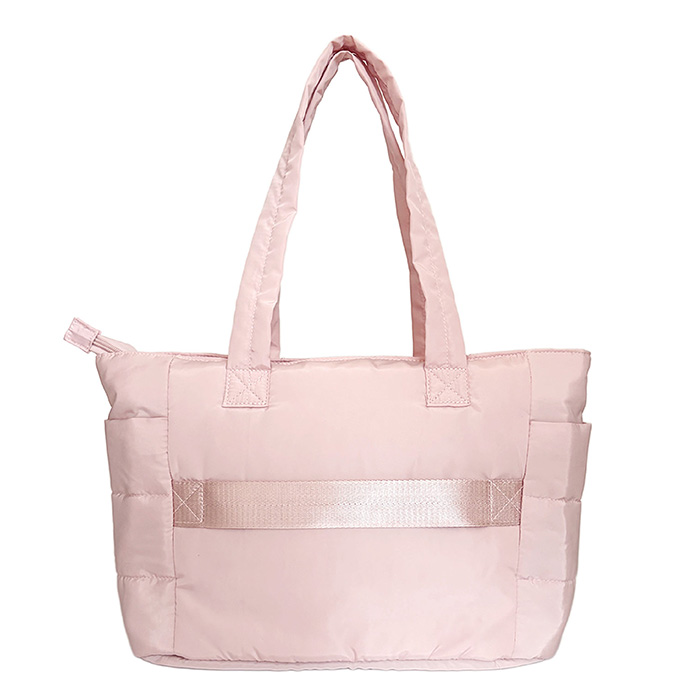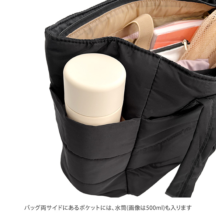ダウンのようにもこもこだから、バッグの中身の形がわかりにくく、外からの多少の衝撃は和らげてくれます。
