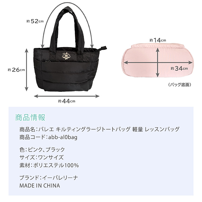 バレエ キルティングラージトートバッグ 軽量 レッスンバッグ