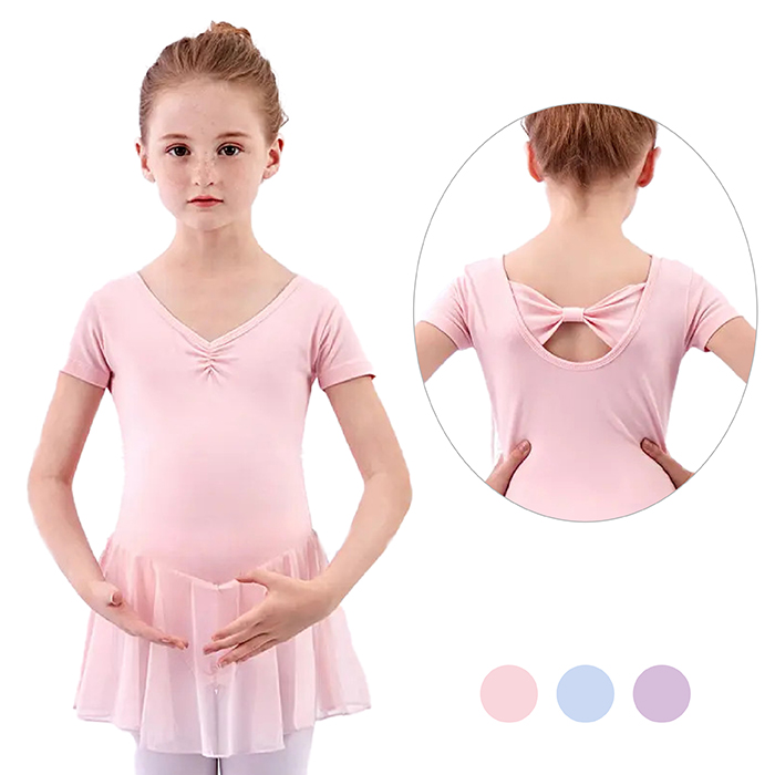 ■シフォンスカートレオタード バックリボン(半袖) B8085 子供・ジュニア