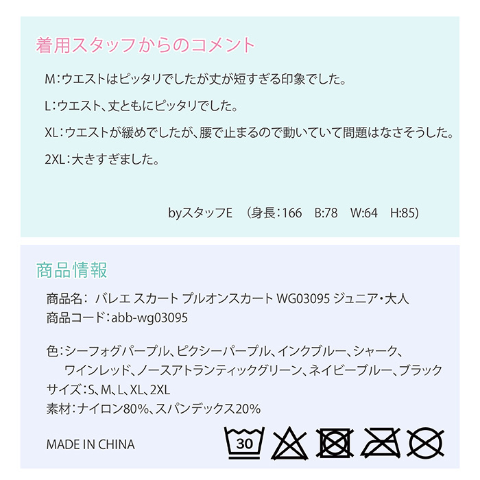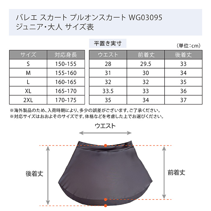 商品名:バレエ スカート プルオンスカート WG03095 ジュニア・大人