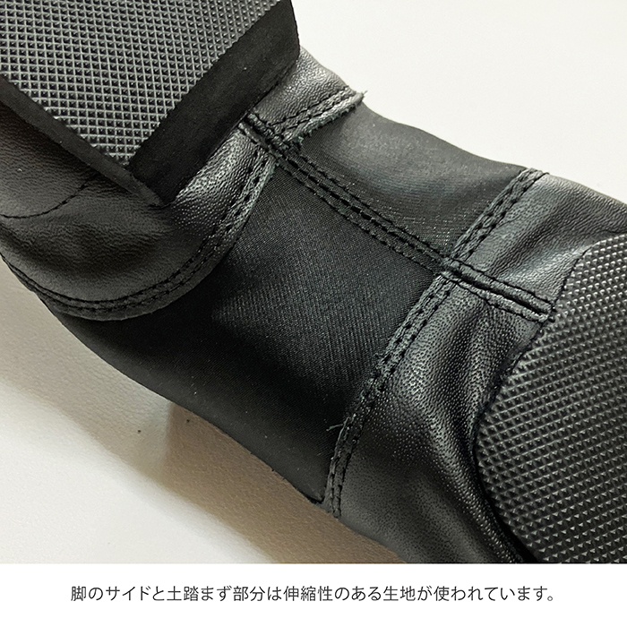 サイドから土踏まずにかけて、伸縮性のある生地が使われており、履き心地抜群。