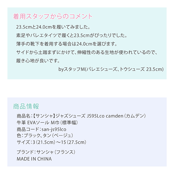 【サンシャ】ジャズシューズ JS95Lco camden(カムデン)牛革 EVAソール M巾(標準幅)