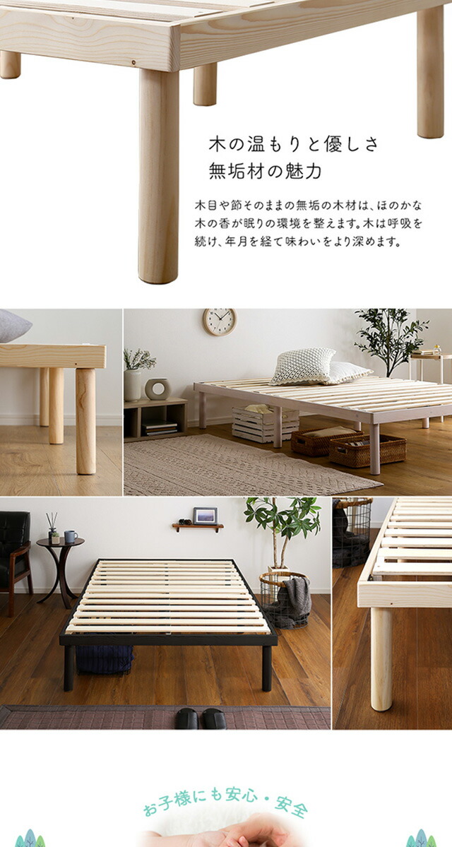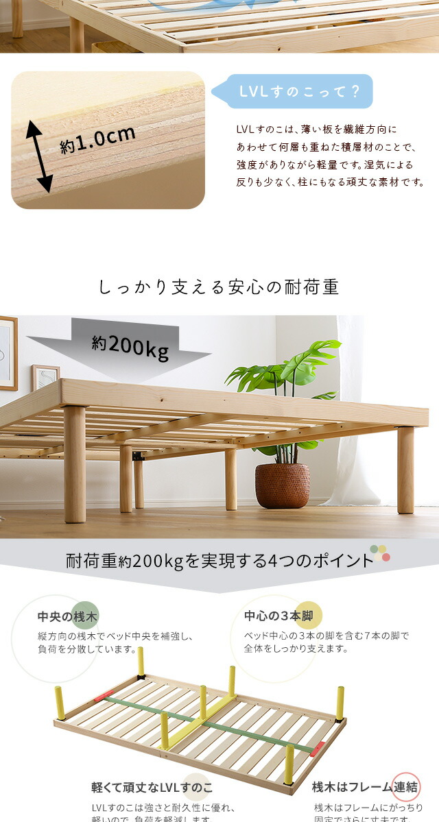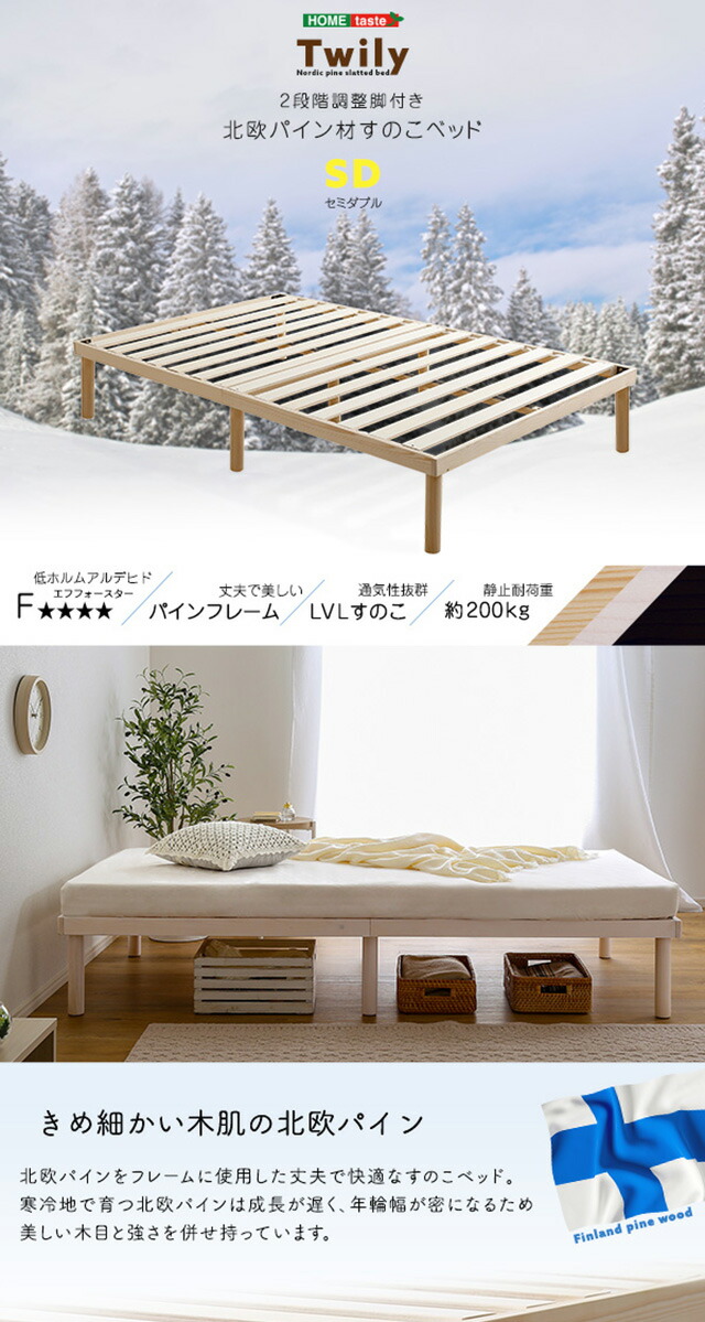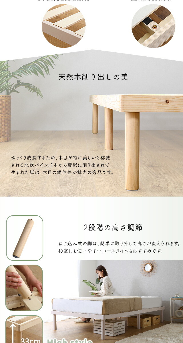 パイン材高さ2段階調整脚付きすのこベッド(セミダブル)