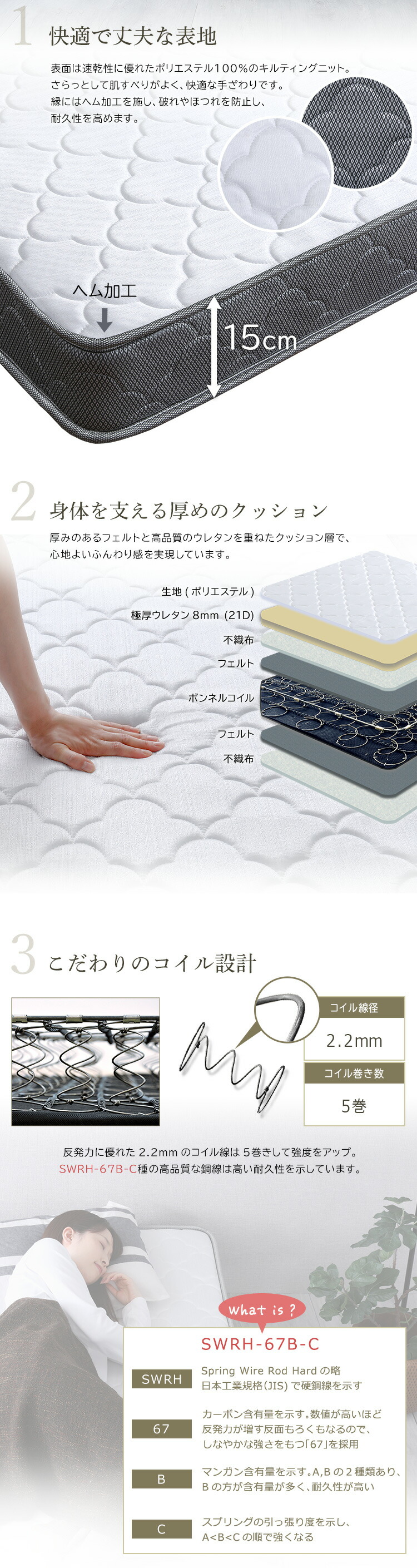 ボンネルコイルマットレス【Bonjia-ボンジーア-】セミダブルサイズ
