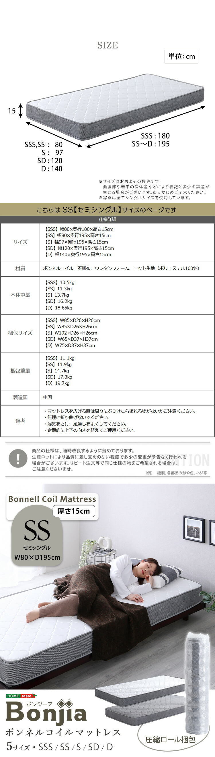 ボンネルコイルマットレス【Bonjia-ボンジーア-】セミシングルサイズ