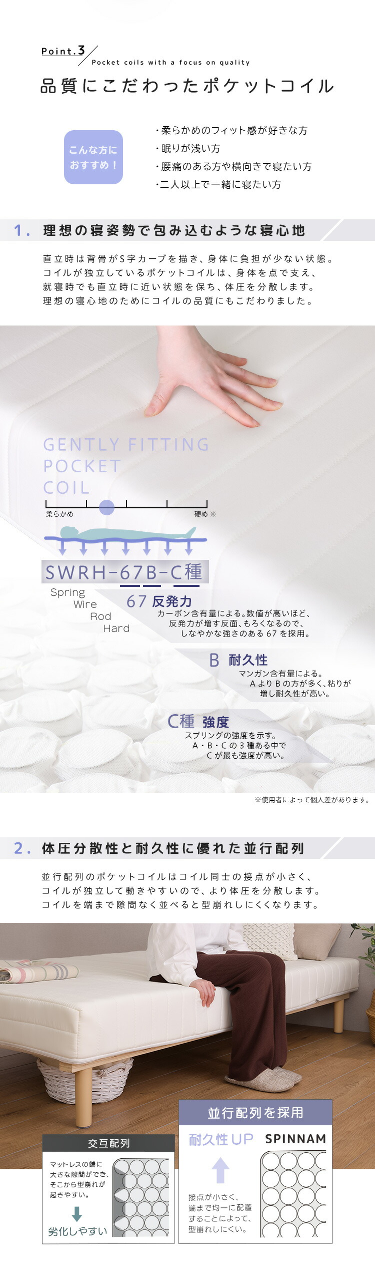 >>脚付きポケットコイルロールマットレス【SPINNAM-スピンナム-】 Sサイズはこちら