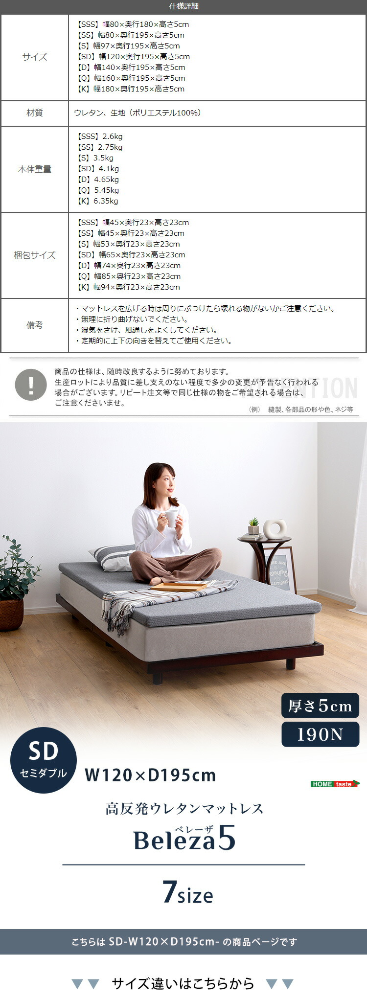 高反発ウレタンマットレス【Beleza5-ベレーザ・ファイブ-】(セミダブル)