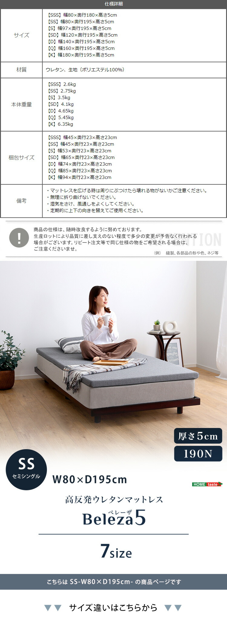 高反発ウレタンマットレス【Beleza5-ベレーザ・ファイブ-】(セミシングル)