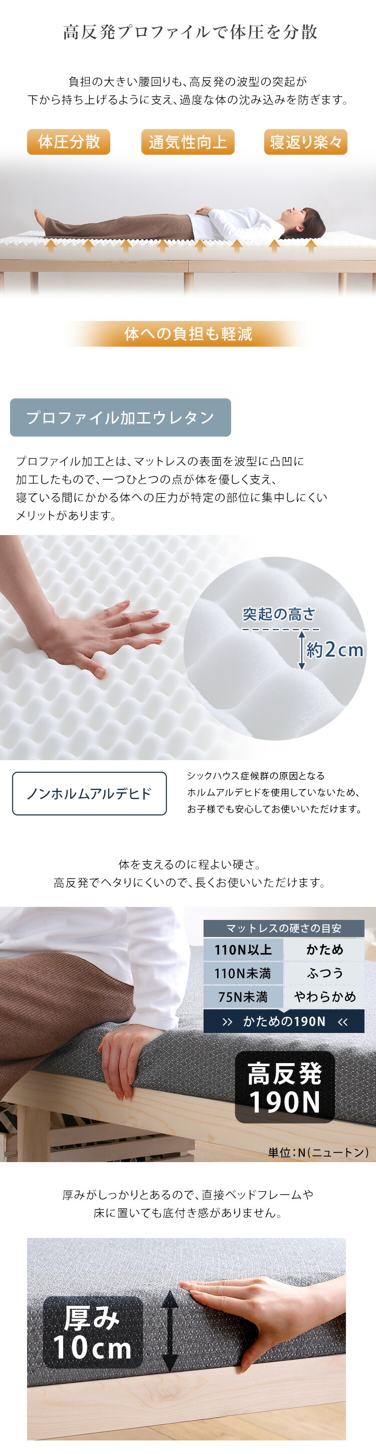 高反発プロファイルウレタンマットレス【Beleza10-ベレーザ・テン-】(セミシングル)