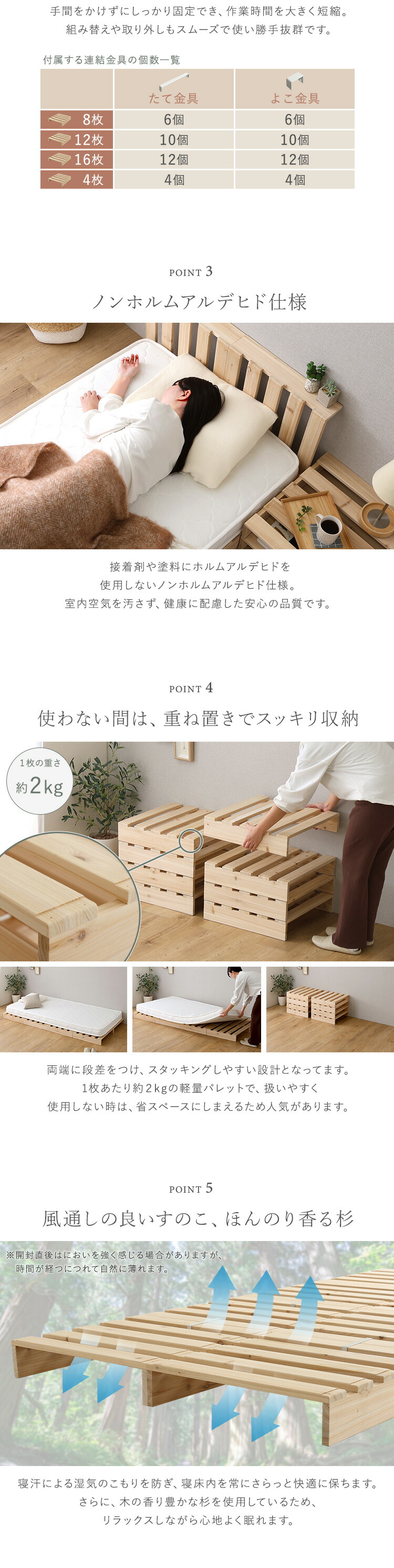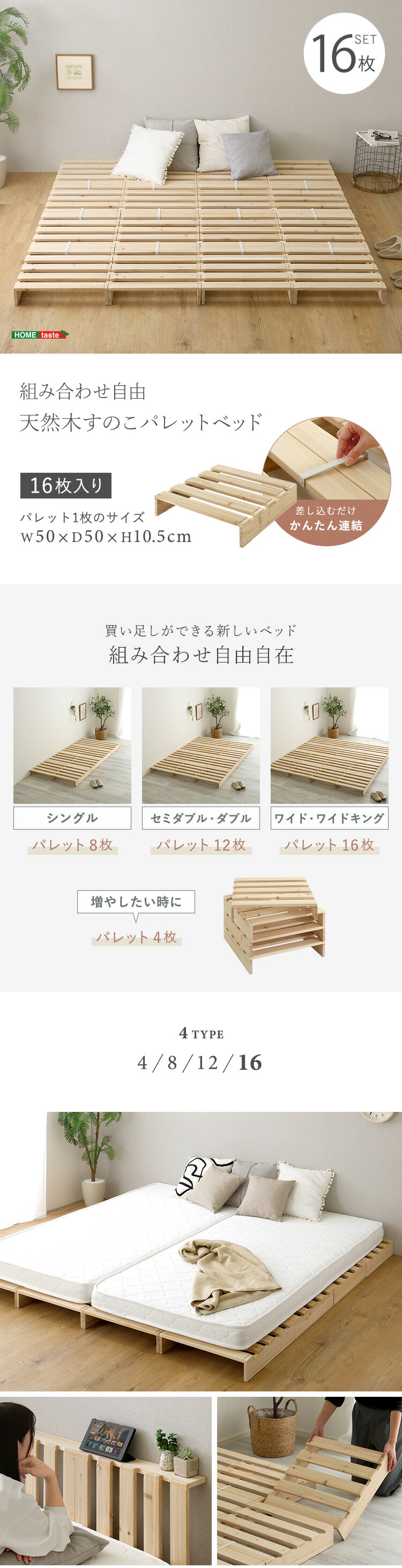 組み合わせ自由! 天然木 すのこパレットベッド 16枚入り