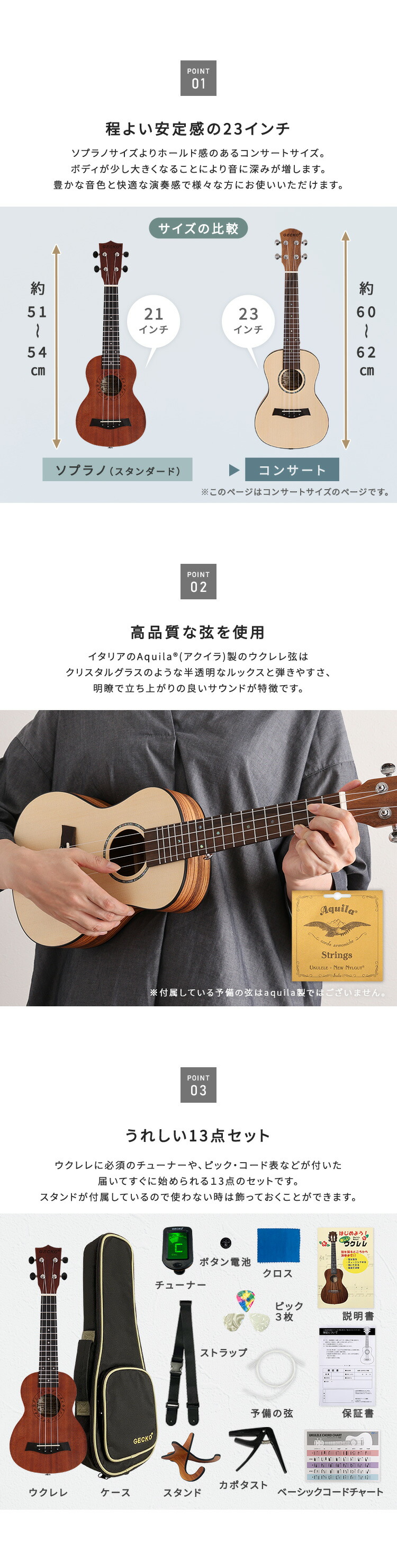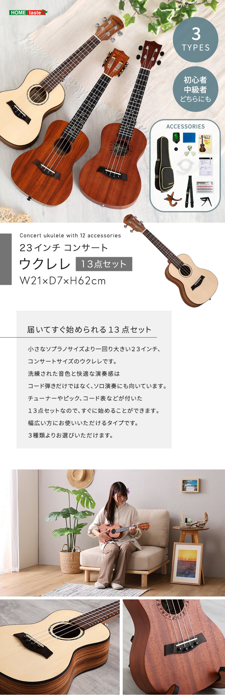 初心者でも始めやすい ウクレレ 13点セット 23インチ(コンサート)