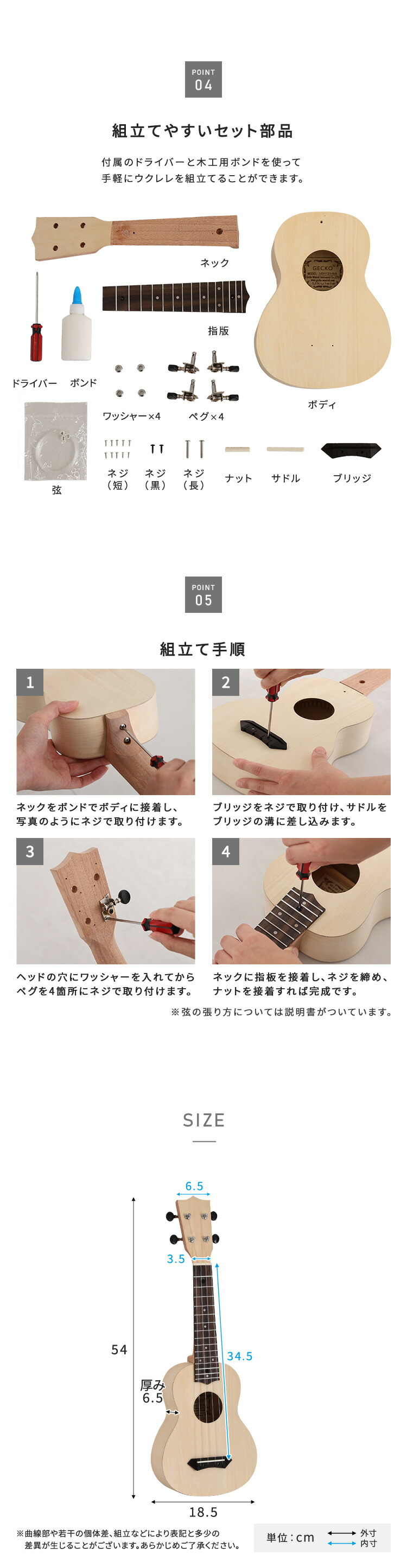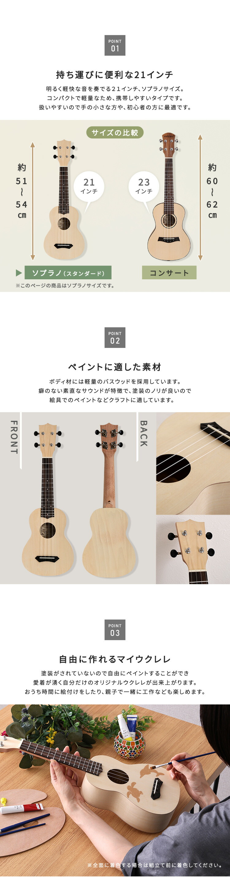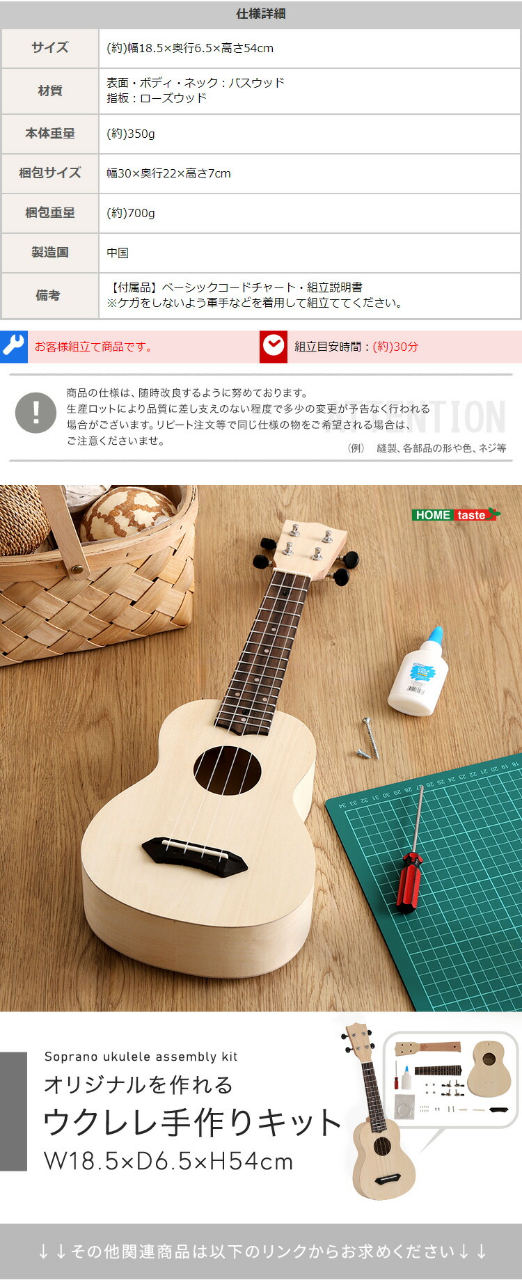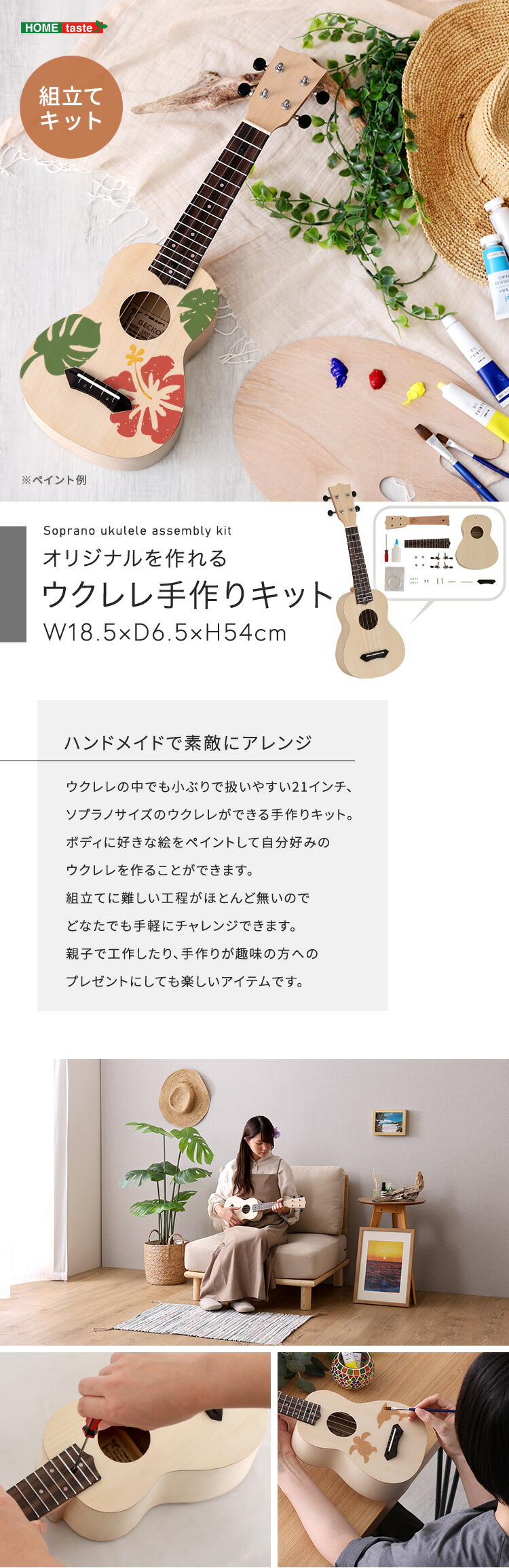 オリジナルを作れる ウクレレ 手作りキット 21インチ(ソプラノ)