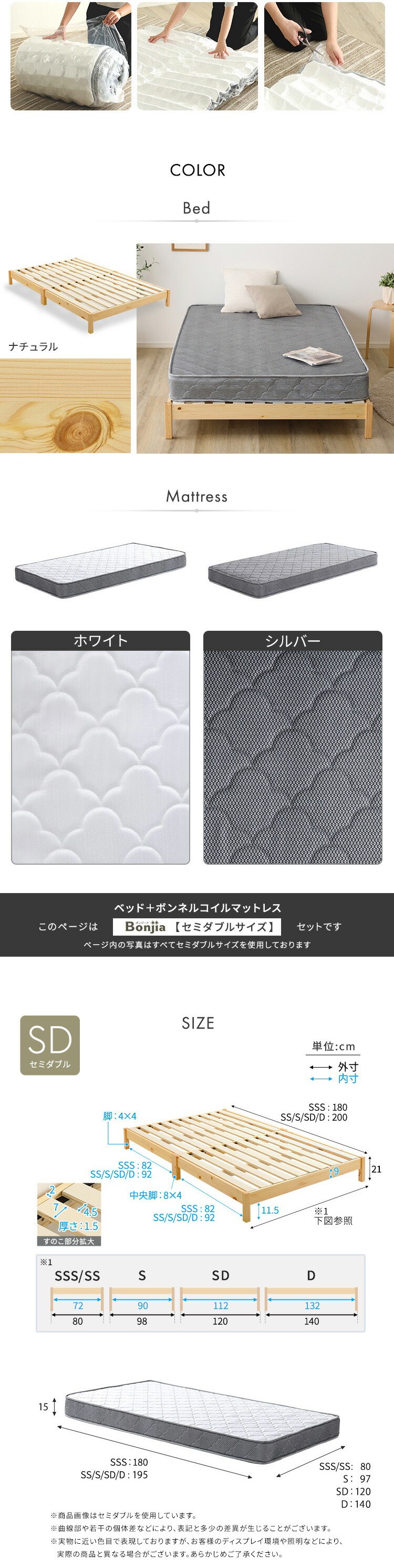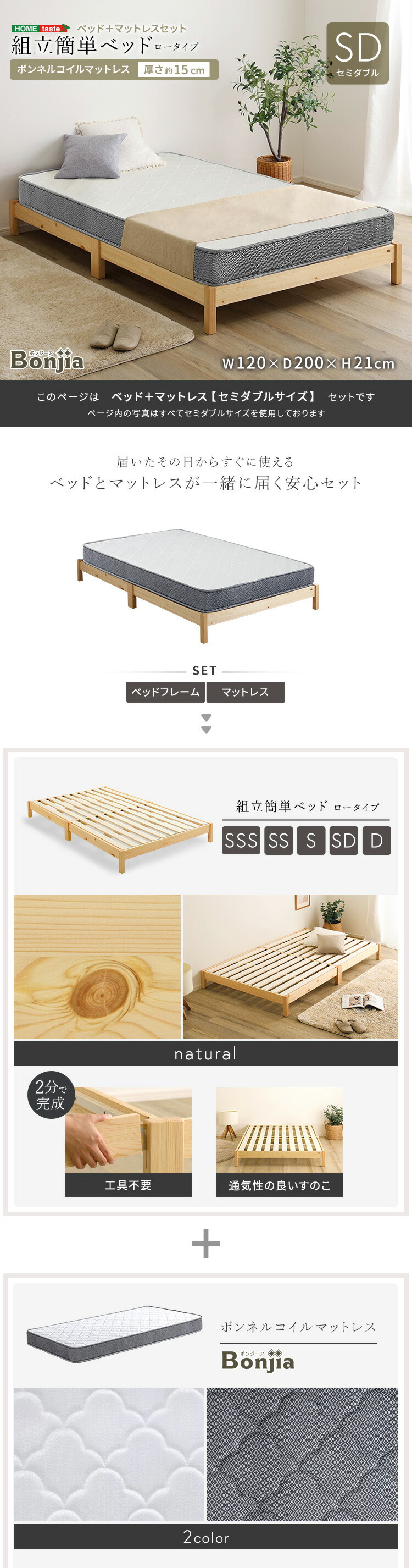 2分で完成!組立簡単ベッド ボンネルコイルマットレスセット(セミダブル)
