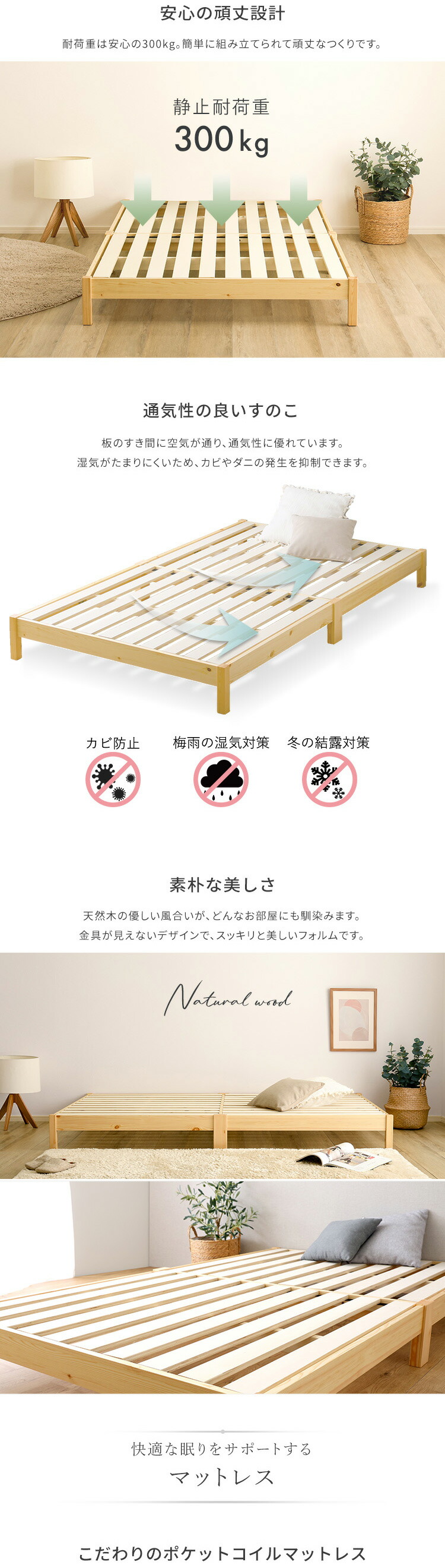 2分で完成!組立簡単ベッド ポケットコイルマットレスセット(セミシングル)
