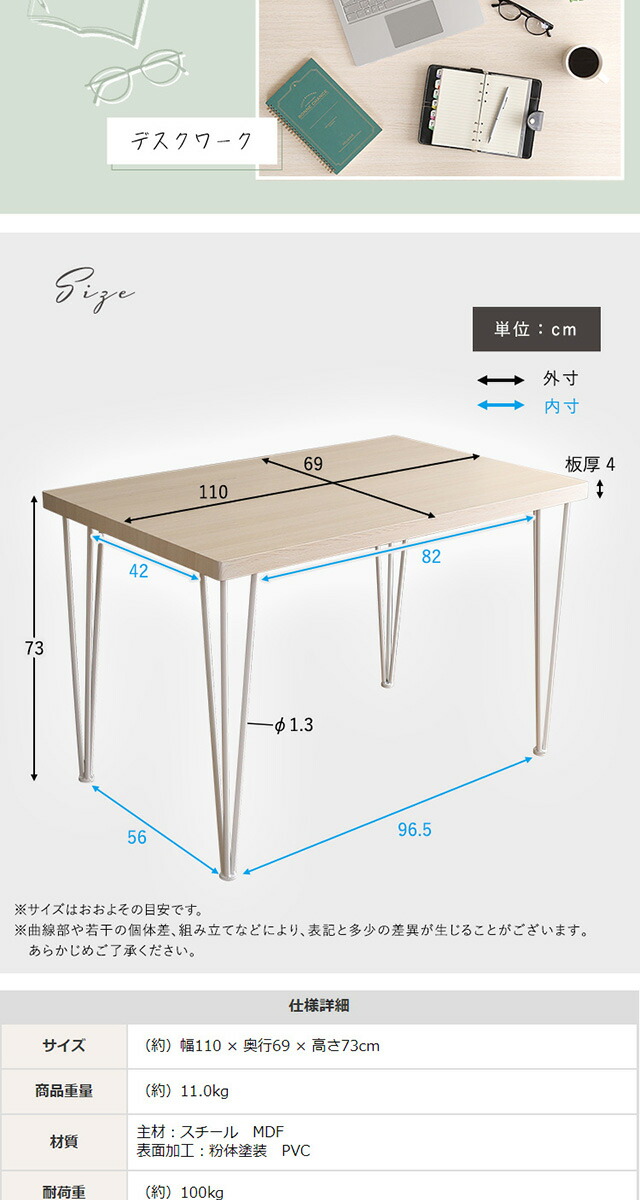 さわやかなオシャレテーブル110cm幅
