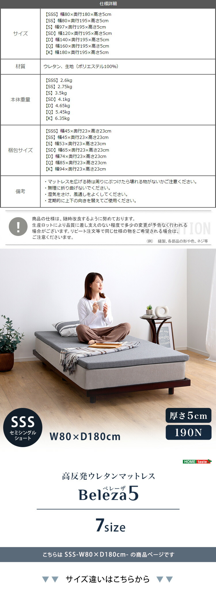 高反発ウレタンマットレス【Beleza5-ベレーザ・ファイブ-】(セミシングルショート)