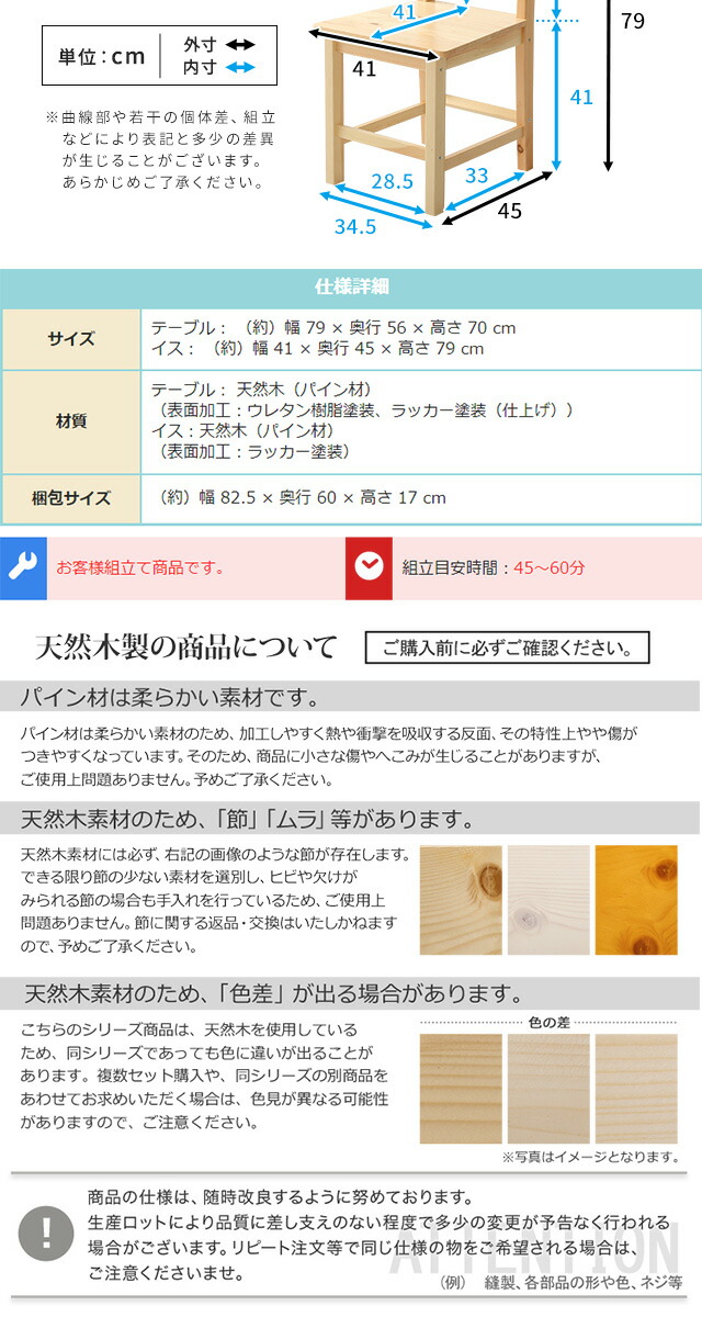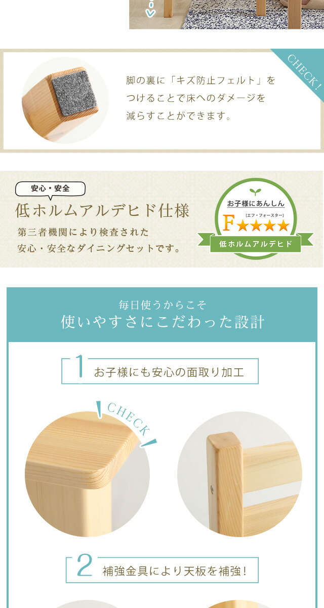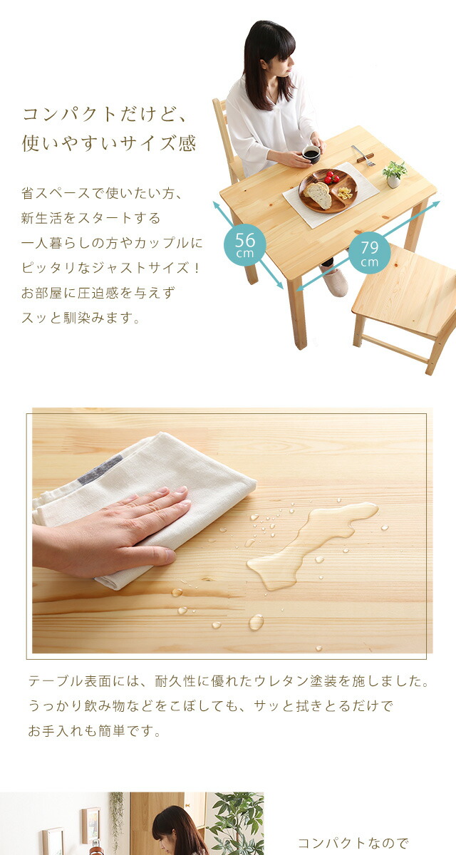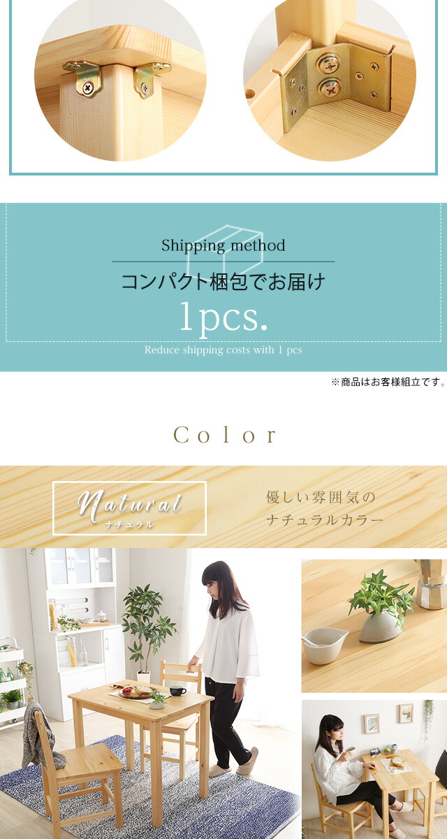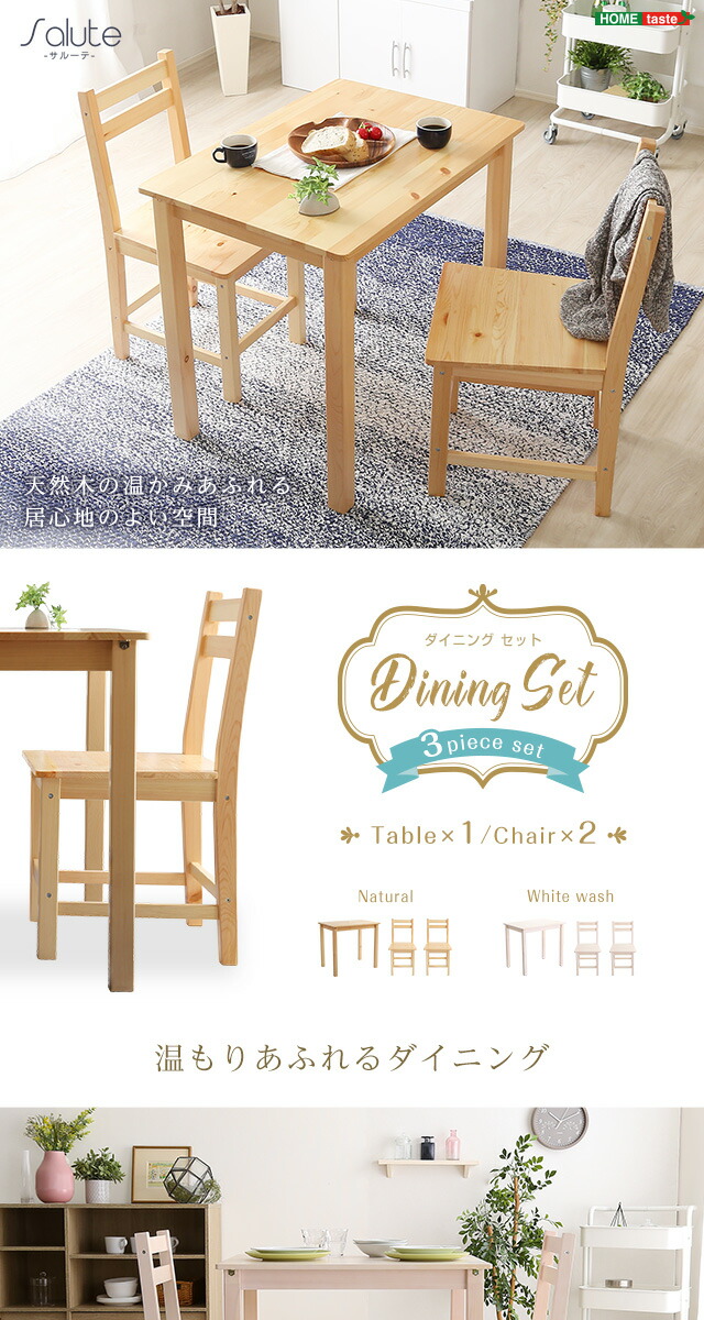 北欧テイスト ダイニング3点セット コンパクト梱包 天然木製 【Salute-サルーテ】