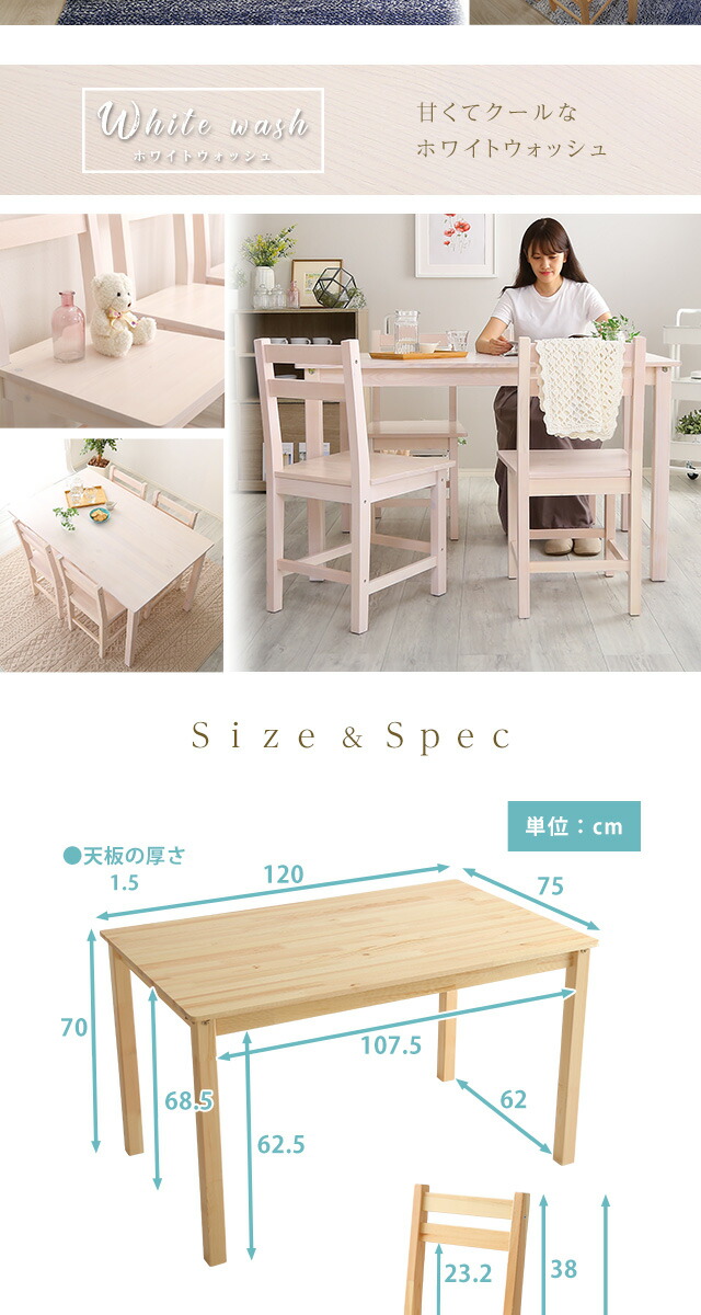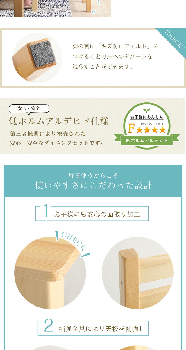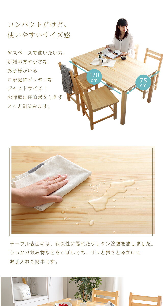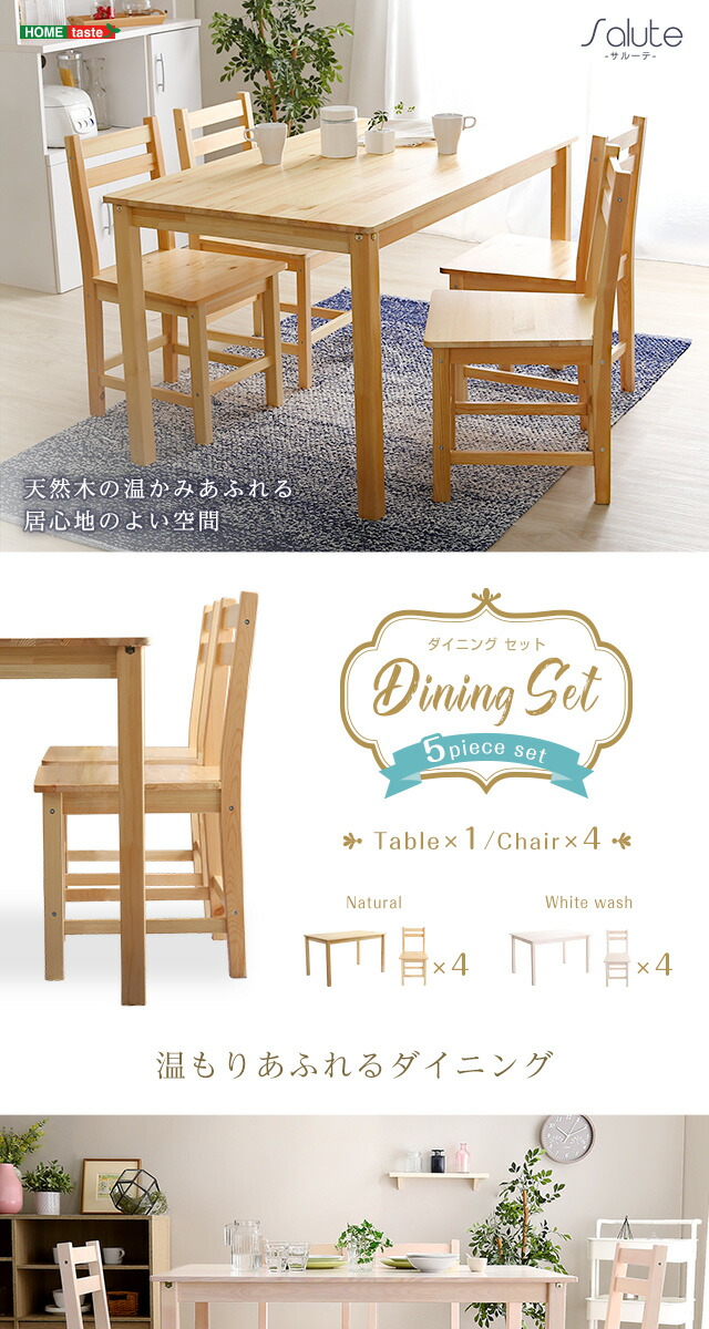 北欧テイスト ダイニング5点セット 天然木製 【Salute-サルーテ】