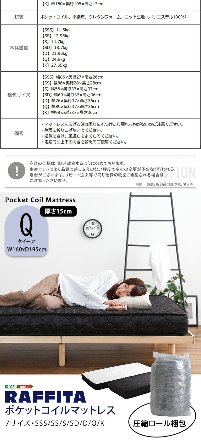 特許技術の圧縮梱包 ポケットコイルマットレス(クイーン)
