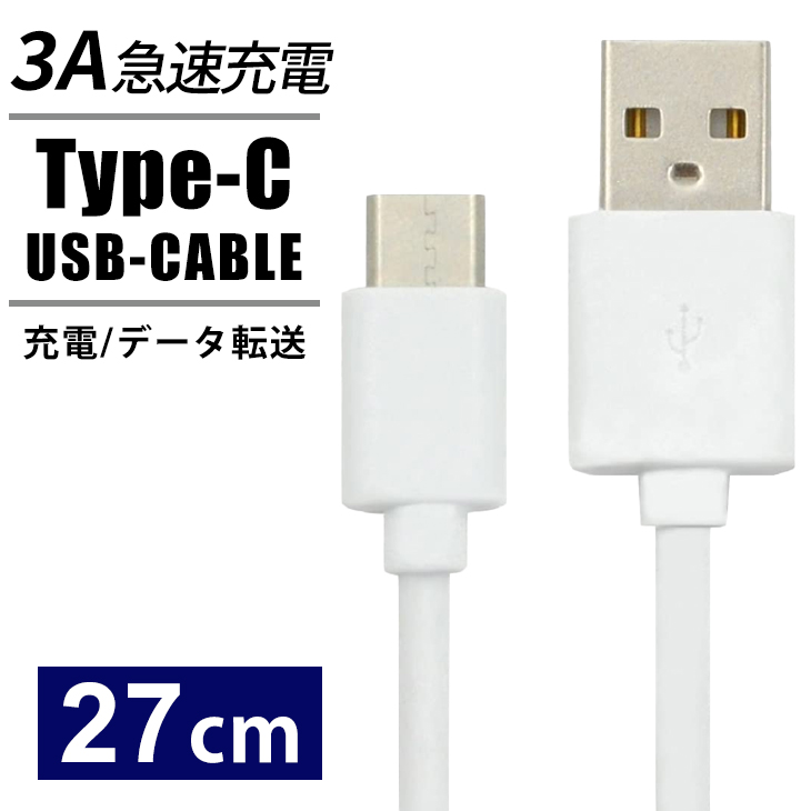 Type-C搭載スマホのデーター通信&充電に最適な、USB Type-Cケーブル 27cm。