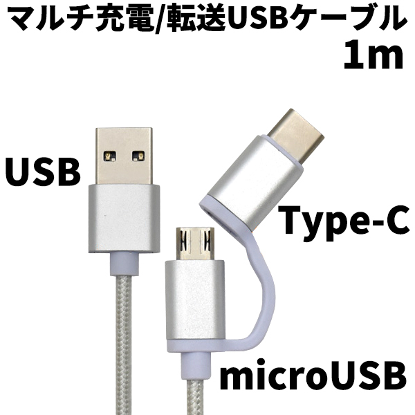 microUSB + Type-C マルチ充電 転送USBケーブル 1m