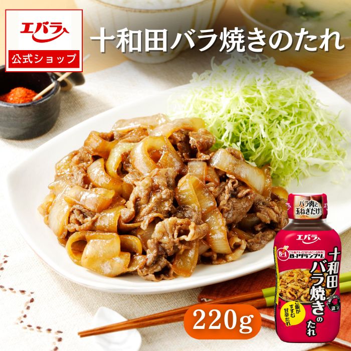 醤油をベースに、にんにくと生姜を合わせたご飯がすすむ甘辛だれです。本品は、B-1グランプリ公認、十和田バラ焼きゼミナール認定商品です。※ 醤油をベースに、にんにくと生姜を合わせたご飯がすすむ甘辛だれです。※ たっぷりのたまねぎが美味しくお召しあがりいただけます。※ 作り方はとても簡単、よく炒めた玉ねぎにバラ肉(牛または豚)を加えて炒め、 本品を加えて絡め焼くだけです。(肉:玉ねぎ=1:1.5が目安)※ 最後にたれの水分をとばすように強火で炒め、おいしさをギュッと閉じ込めて できあがりです。