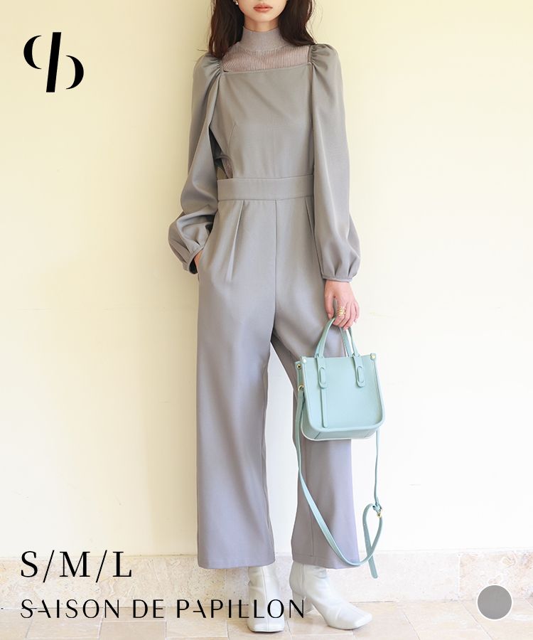 ふんわりボリュームスリーブにサイドカットアウト、スクエアネック♪デザイン性が豊富なスクエアネックオールインワンです。