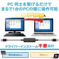 ■2台のパソコンのデータをケーブル1本で、簡単に移行することができるUSB3.0対応リンクケーブルです。 ■マウスでファイルやフォルダをドラッグ&ドロップするだけで、2台のパソコン間のデータを移動することができます。 ■同梱ソフト「Go! Bridge」を使用すると、接続したパソコンのファイルやフォルダを一覧で確認でき、Windows(R)の「エクスプローラー」感覚でドラッグ&ドロップ操作ができます。 ■Type-C変換アダプタが付属し、Type-Cポートを搭載したパソコンやタブレットとのデータ移行にも使用可能です。 ■1台のマウス・キーボードで2台のパソコンを操作可能です。 ■データの移動だけでなく、2台のパソコン間でテキストのコピー&ペーストも可能です。 ■ドライバーのインストール操作が不要で、ケーブルを接続するだけで使用可能です。 ■WindowsパソコンとMacに対応しています。 ■USB2.0の約10倍(理論値)の転送速度のUSB3.0に対応しており、大容量のデータでもストレスなく高速に転送可能で