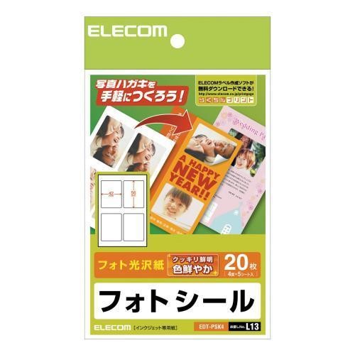 エレコム(ELECOM) EDT-PSK4 フォトシール 角型 はがきサイズ 4面 5シート