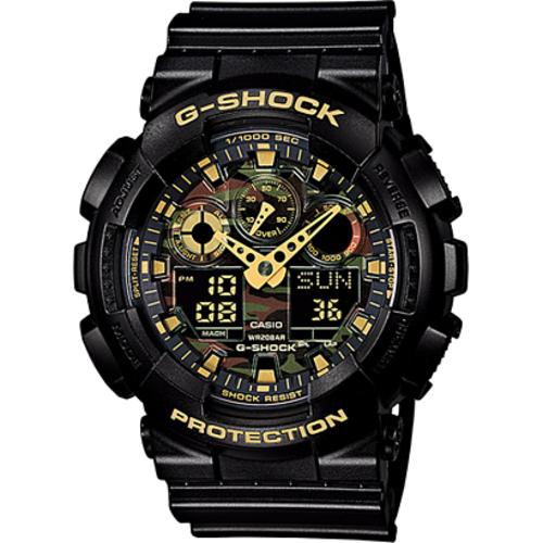 ■ベースモデルには迫力のビッグケースが人気のGA-100を採用。■ボディ・バンドはブラックやグレーをベースカラーに、インパクトのあるメタリックカモフラージュの文字板を組み合わせました。■た、シルバー・ゴールドの時分針・インデックスを用いることで、シックな色使いの中でも個性がキラリと輝くクールな表情に仕上げました。