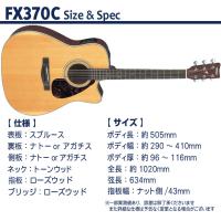 ■日本を代表するギターブランド「YAMAHA」の特別モデルながらヤマハの厳しい品質管理で安定した品質の『FX370C』。 どっしりとした、しっかりと鳴るウェスタン/ドレッドノートタイプのボディに、やや短めの弦長(634mm)で押さえ易さと音量を保持した特別な仕様。また、カッタウェイで演奏性も高くプリアンプも搭載、幅広いサウンドメイクと合わせてステージ上でも即戦力となります。
