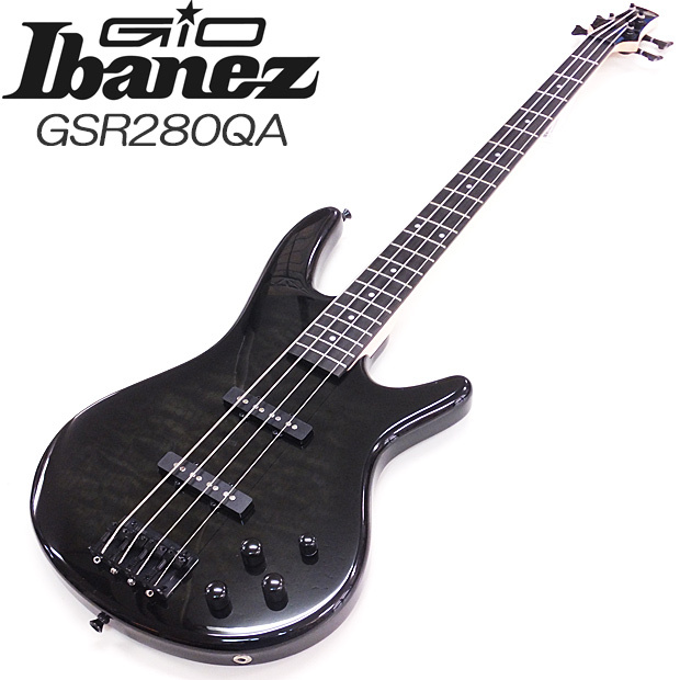 GioIbanezエレキベース GSR280QA 登場。シースルーの美しいトップと軽く取回しの良いボディにJ・Jピックアップのレイアウトで、HighとLowMidをブーストさせるEQ(Phat II EQ)を搭載。パンチのある迫力のベースサウンドを出力します。