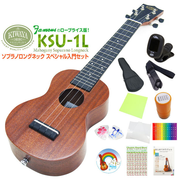 | 日本が世界に誇るウクレレブランド「フェイマス」で知られるキワヤ商会による、初心者向けの海外製低価格シリーズ『KIWAYA UKULELES』。国産のフェイマスウクレレクオリティをより低価格で、多くの方に楽しんでもらいたい。『KIWAYA UKULELES』シリーズには、日本のウクレレ界をリードするキワヤ商会のそんな思いが込められています。 『KSU-1L』は人気のソプラノロングネックモデル。ソプラノボディのウクレレらしい軽やかな音色と、コンサートスケールの演奏性を兼ね備えたロングネックは、男性にも女性にも人気です。フェイマスウクレレに匹敵する美しい音色と丁寧な仕上がりを、海外製ながら高いレベルで実現しています。圧巻のクオリティとコストパフォーマンスに、当店が皆さまに一番にご紹介したい決定版ウクレレです。 【ウクレレの色味・木目につきまして】画像は全て参考画像です。実際のウクレレは画像よりも色の濃淡や色味に一定の範囲で差違がございます。また、色味や木目の差違による交換・返品は承っておりません。予めご了承の上お買い求め下さいますよう、お願い申し上げます。 |