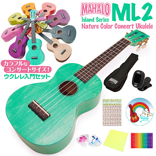 | フレンドリーでハッピーな楽器、ウクレレをはじめてみませんか? Mahalo ML2ウクレレは、自然界の美しい色彩をボディにまとったカラフルでポップなコンサートウクレレです。ちょっと大きめのコンサートは、男女問わずしっくりくるサイズ感と豊かな音色が魅力で、初心者の方にも人気が高まってきているサイズ。Mahalo ML2ならコンサートウクレレをどなたでも気軽に楽しめます。 豊富なカラーバリエーションは青い海やオレンジの夕日、果実の鮮やかな赤や桃色のサンゴなどのネイチャーカラーを木目を活かすシースルー塗装で再現していて、手作り感のある温かい仕上がり。貴方に似合うカラーがきっと見つかります。 南国テイスト溢れるリラックス感満点のML2ですが、Mahaloならではの音色への拘りもしっかり息づいています。リンデン材の超軽量ボディは音量に配慮したマハロ独自設計のブレイシングを採用、定番のアクイーラ弦、グラフテックのNuBoneサドルの組み合わせにより、中低音豊かでヌケのよい理想的な音色が飛び出します。弦高も驚くほど低めにセッティングされていて、ビギナーに優しい弾き心地です。クラシカルなスロテッドヘッドもML2のルックスに花を添えています。コストパフォーマンス満点のMahaloらしいコンサートウクレレML2で、楽しいウクレレライフをスタートしましょう! ※このモデルは気軽に、気楽にウクレレを手に取っていただけるお手頃価格のウクレレです。生産コストを抑えているため、塗装のムラやちいさなキズなど、仕上げにラフなところがあります。ウクレレの品質につきましてはお問い合わせも承っておりますので、事前にお電話やメールでお問い合わせいただければ幸いです。 ※一回のご注文数が多い場合は、表示の出荷予定よりもお時間をいただく場合がございます。 |