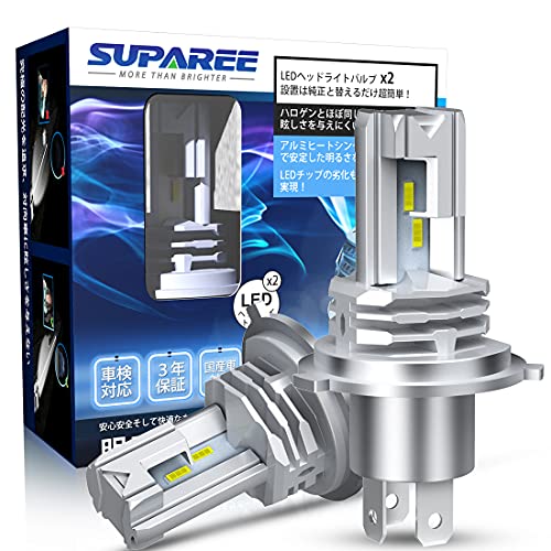 SUPAREE H4 LEDヘッドライト HI/LO切替 ファンレス 車/バイク用 DC9-32V 6500K ホワイト 一体型 ledバルブ