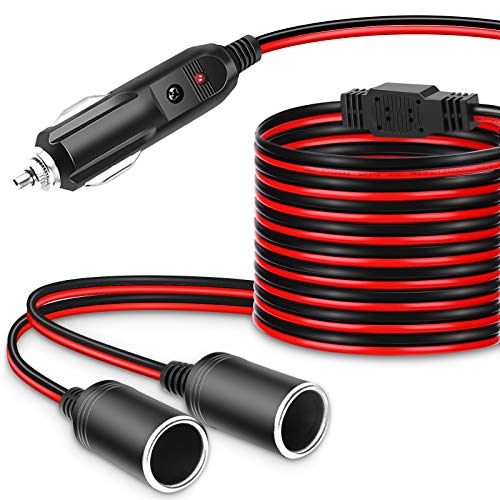 ・【12V/24V車対応?】この車用シガーソケット 延長ケーブルは、運転席のシガーコンセント2分配し、ダッシュカム、コンプレッサー、シートヒーター、車載冷蔵庫、車用掃除機、空気清浄機、その他の自動車製品に完全に適合します。車、RV、トラック、ボート、トラベルトレーラー、ピックアップ、バンで広く使用されています。車のシガソケットから外部電源の取り出しをする時には大変役にたっています。