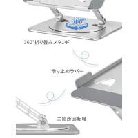 ・2、【360回転式&人間工学&ジオメトリパラメーター調整可能】人間工学デザインにより、高度と角度を無段階調整可能です。PC作業やタブレット用途等、お好みに合わせて、高さや角度を調整し、方向を回転させることで、在宅勤務でも楽に作業できます。パソコンスタンドを使用すると、ラップトップと人の視線は一致し、それと姿勢が正しくなり、背筋が伸び、長い間のデスクトップ作業で、人の首と肩に負担を軽くでき、猫背