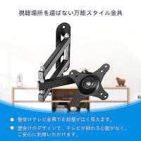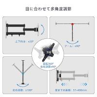 ・【どこでも見やすい向きに調節】この金属壁掛けの柔軟性を最大限に活用し、±20°上下傾斜、±90°/±180°左右調節と360°回転で最大の視聴効果を達成し、視聴場所に合わせてスタイルを自由自在に、楽々テレビが楽しめます。アームとアームの接合部は壁面から57〜400mmまで調整可能です。