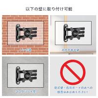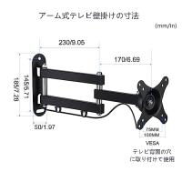 ・【対応機種】15〜32インチモニターやテレビに対応するアーム式壁掛け金具です。耐荷重13kgで 、VESA規格75*75mm〜100*100mmまで、小型テレビにオススメ。※ご注意:乾式壁・石膏ボードのみへの設置はお止めください!木間柱壁の場合は、アンカーを使用しないでください。
