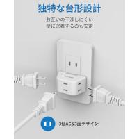 ・【干渉せず・たこ足コンセント】隣接プラグの干渉を解消多方向分岐デザインで、大型充電器もスムーズに接続。壁面に密着する安定設計で、抜き差しもラクラク。