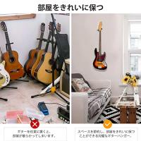 ・【省スペース】壁掛けギターハンガーには通常の床置きスタンドに比べて部屋のスペースを節約できることです。壁に取り付けられた壁掛けギタースタンドに掛けて見た目もすっきりして邪魔になりません。また、使いたいときにサッと取り出せると便利です
