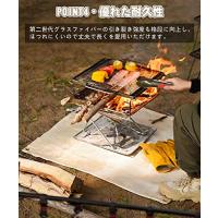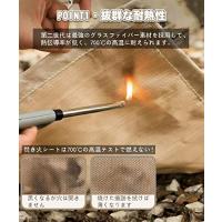 ・【第二世代の焚き火シート】技術のアップグレードで、熱伝導率の低さに秀でたグラスファイバー織物を採用しており、作業耐熱温度700℃、瞬間使用温度1300℃の高熱にも耐えられる安心仕様となります。しっかりと厚みのある丈夫な生地で、焚き火シートは熱や火の粉の影響を受けず、長期間ご利用いただけます。