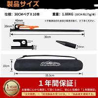 HUNDRUP強化版ペグセット 鍛造ペグ 30cm 10本セット 反射材入りロープ キャンプ ペグ 収納ケース付き φ10mm 設営用具 テ