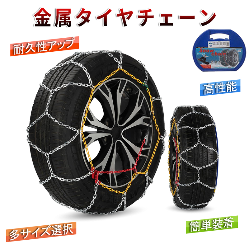 RAKU タイヤチェーン 2個セット 金属亀甲チェーン リング式12mm 女性40秒簡単装着 ジャッキアップ不要 作業軍手付き 滑り止めチェーン 金属製 冬の必需品