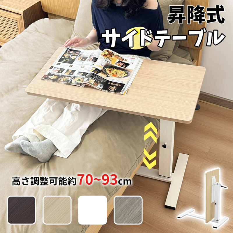【多機能で活躍するサイドテーブル】ベッドサイドやソファ横はもちろん、スタンディングデスクや介護用テーブルとしてもご利用いただけます。読書や在宅ワーク、療養時の食事補助にも便利な多用途設計です。