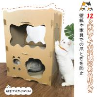 【安定感抜群の爪とぎ】12箇所硬くて安定感のある爪とぎ付きの猫用ハウス。爪とぎクズも出にくく、お掃除も簡単です。壁紙や家具での爪とぎを防止できます。